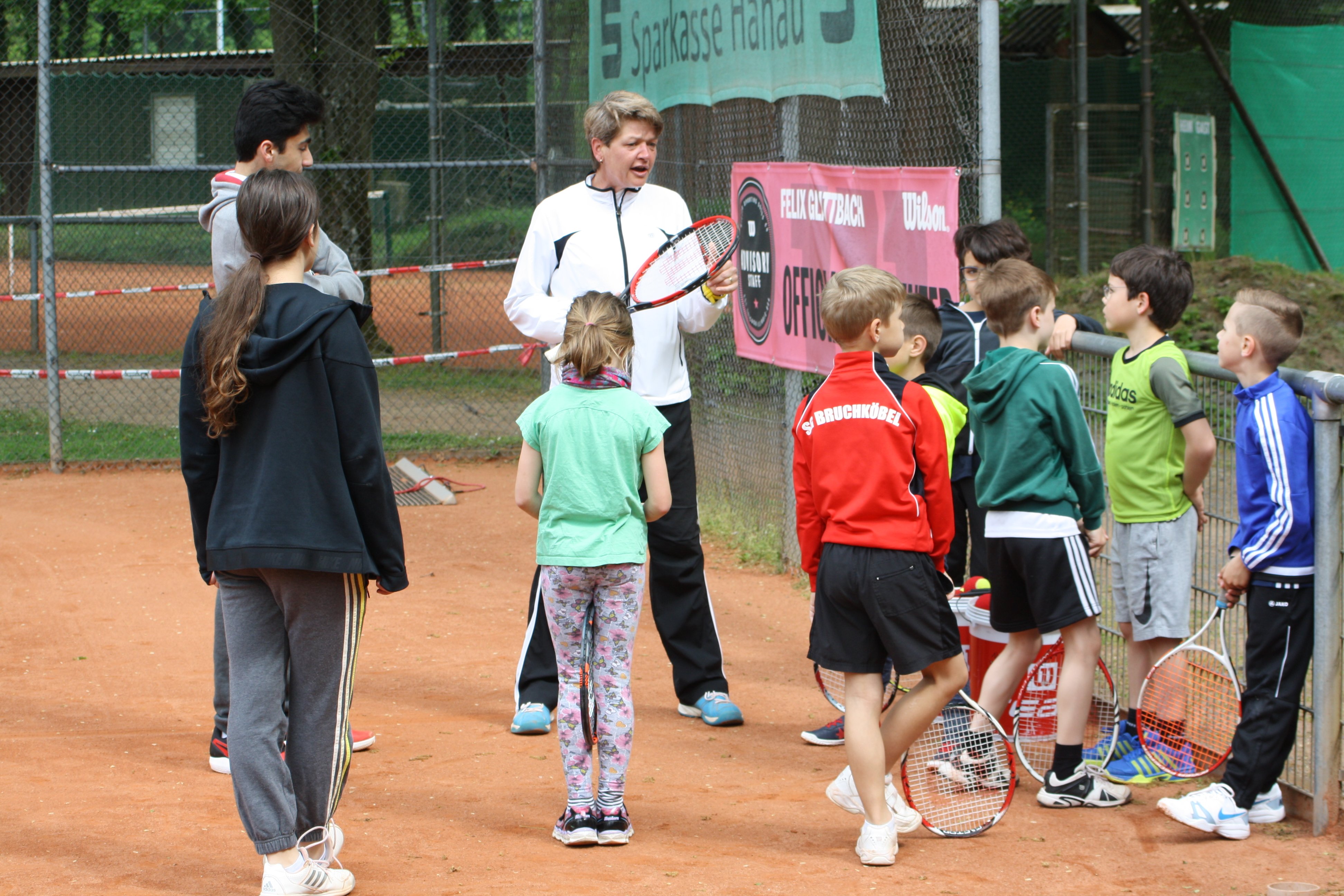 Währenddessen trainierten Frank und Felix mit dem Nachwuchs. Viele Tennisneulinge konnten mit den beiden die ersten Bälle schlagen.