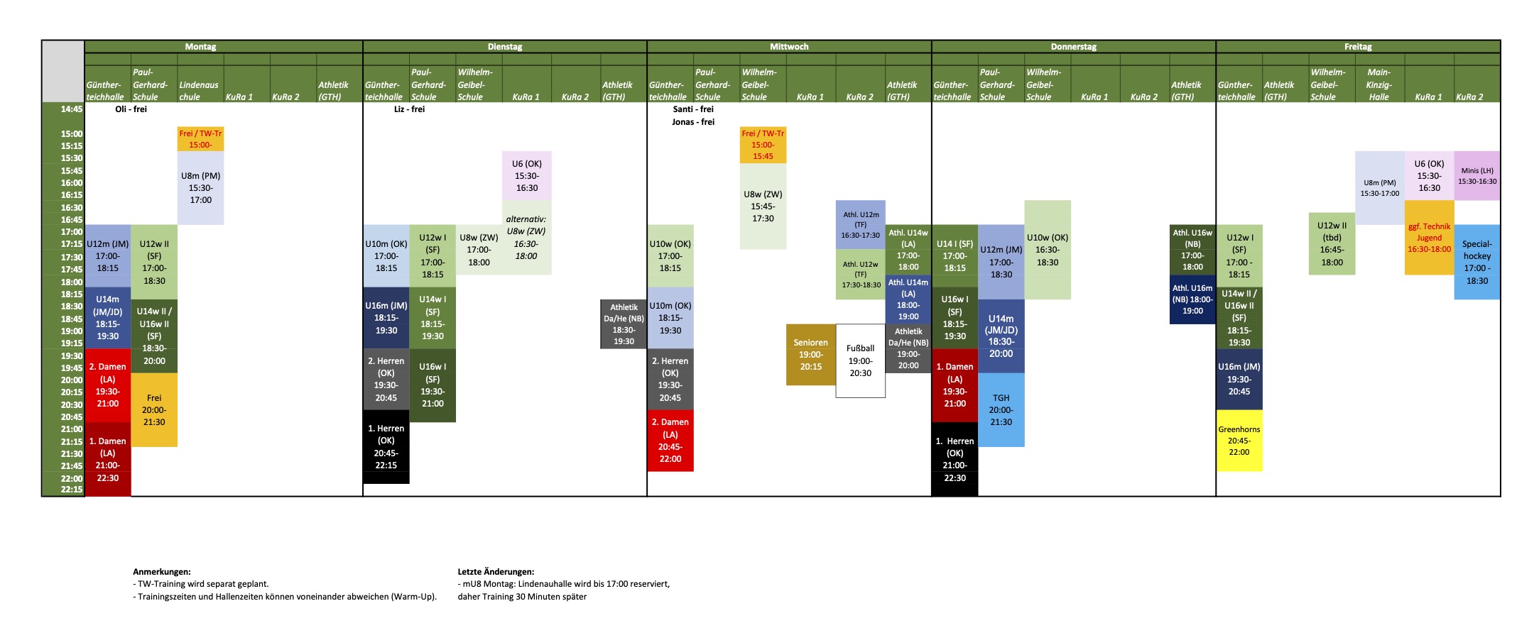 Angegebene Zeiten sind Platzzeiten, die Trainingszeiten können hiervon abweichen.